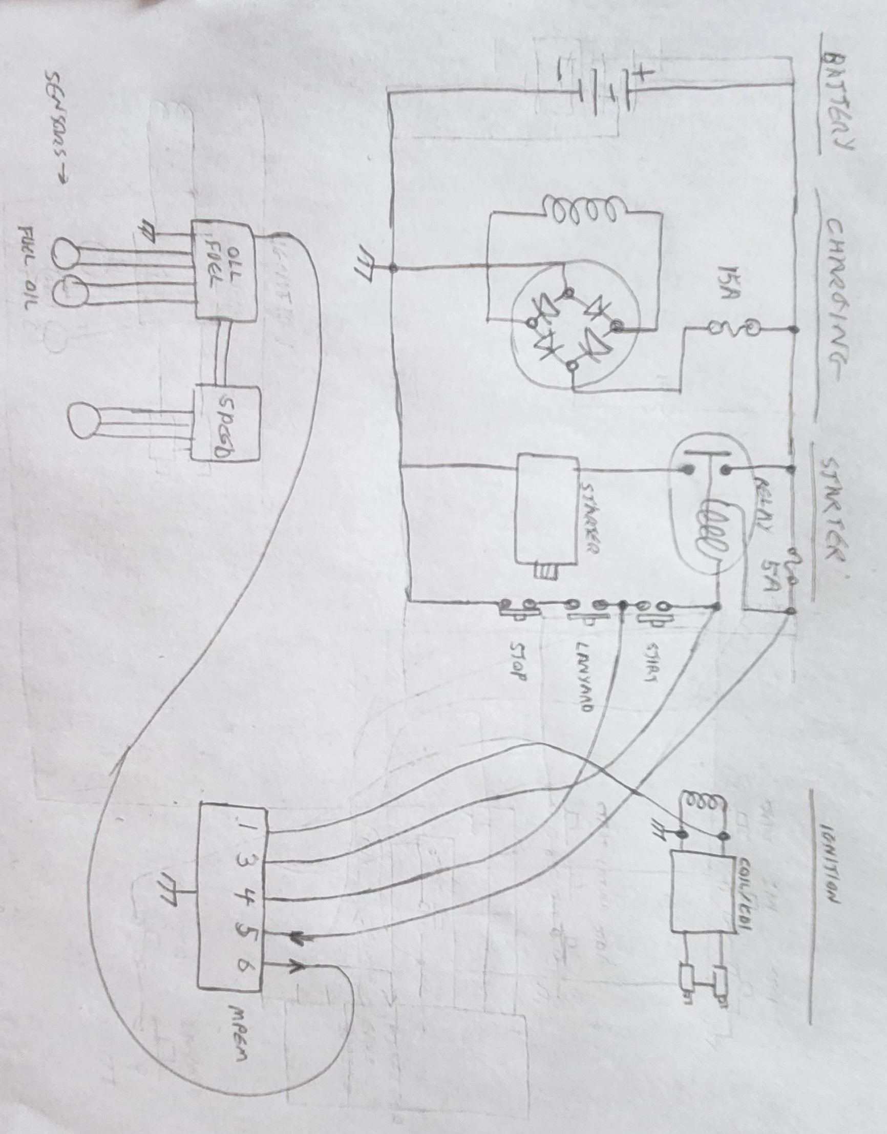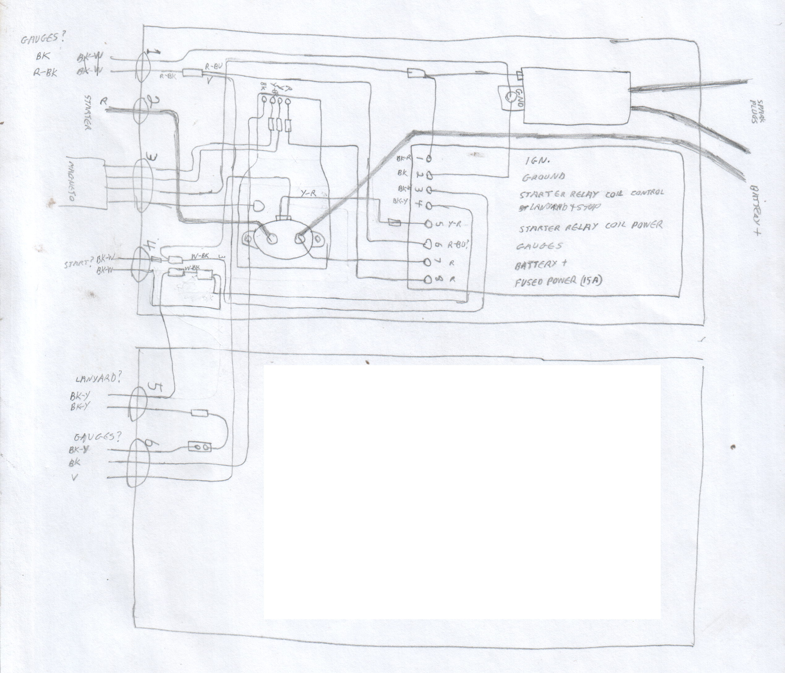 The ignition system consists of the magneto (front flywheel and upper coil), the ignition module (CDI and coil) and sparkplugs. The MPEM has the ability to stop the engine and limit the engine speed.